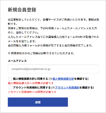 ※アカウント作成の際には個人情報保護方針およびアカウント利用規約への同意が必要です。