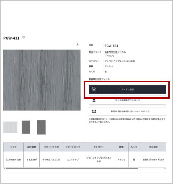 サンプルをご希望の製品に表示されている「カートに追加」ボタンをクリックしてください。