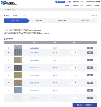 ログインしていただくことで製品検索・サンプル請求のページや、WEBカタログのページにカートボタンが表示されるようになります。