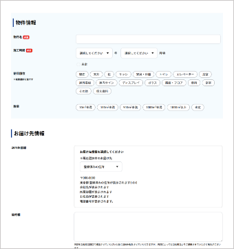 ご検討いただいている物件情報等のご入力や送付先を選択(またはご入力)していただき「ご入力内容の確認」ボタンをクリックしてください。
