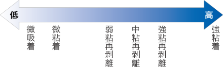 長期使用に最適な強粘着タイプの粘着剤や、短期間の使用後に剥がせる再剥離タイプの粘着剤など、使用用途や施工期間、使用環境に合わせ、さまざまなタイプの粘着剤をご用意しております。