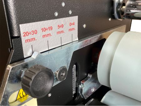 加工の厚みは、「0~4mm」「5mm~9mm」「10mm~19mm」「20mm~30mm」と4段階の調整が可能で、フィルムから板物まで加工が可能です。
