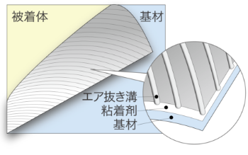 粘着剤に微細な溝を施すことで、施工時に抜群のエア抜け性を発揮します。施工時間が短縮でき、施工後の仕上がりも良好です。