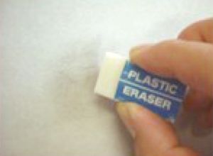 メラミンフォームに水を含ませて軽く拭き取ってください。
